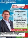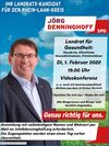 MIEHLEN: Nach der Nominierung durch den Kreisvorstand im Dezember hat die SPD in einer Mitgliederversammlung Jörg Denninghoff nun mit einem Traumergebnis von 98,4 % auch offiziell zu ihrem Kandidaten gewählt. „Ich danke euch sehr für das Vertrauen und bin hoch motiviert, alles für das Wohl unserer Heimat, dieser wunderschönen Region und die Menschen im Rhein-Lahn-Kreis zu geben! Ich freue mich auf die bevorstehenden 59 Tage bis zur Wahl und trotz Pandemie auf gute Gespräche und Begegnungen, die überwiegend in digitaler Form anstatt in Präsenz stattfinden dürften“, so Jörg Denninghoff nach dem eindrucksvollen Votum, das ihm enorm Rückenwind für die kommenden Wochen verleiht.